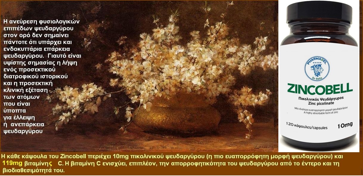 Σε περιπτώσεις που αποφασίζεται η συμπληρωματική χορήγηση ψευδαργύρου επιλέγεται η πιο ευαπορρόφητη μορφή του, όπως πικολινικός ψευδάργυρος [7, 8]. Ο τελευταίος γίνεται πιο ευαπορρόφητος και βιοδιαθέσιμος, όταν χορηγείται ταυτόχρονα με βιταμίνη C [9].