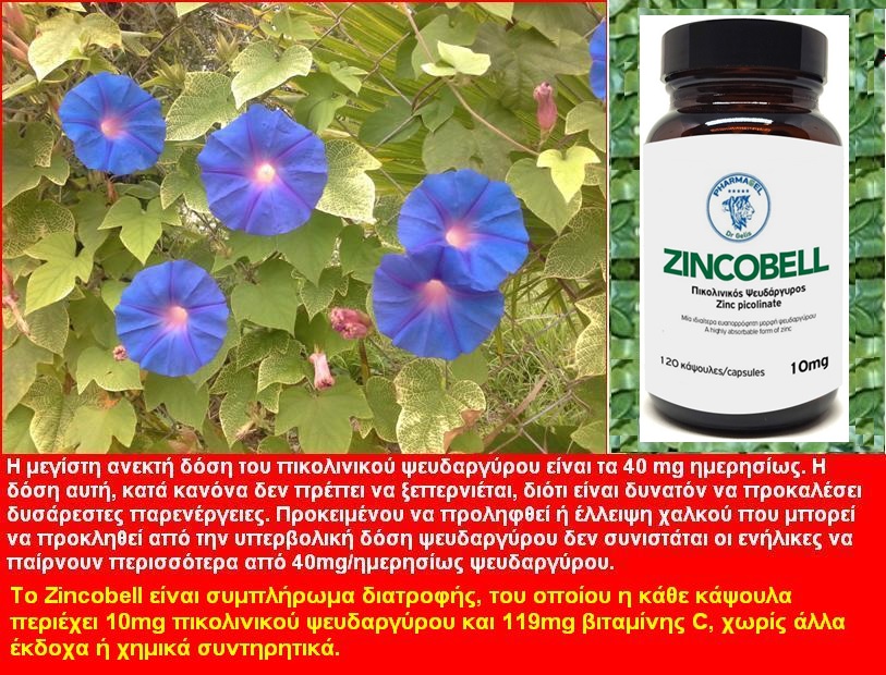 Η ασφαλέστερη, αποτελεσματικότερη και πλέον ευαπορρόφητη χορήγηση πικολινικού ψευδαργύρου επιτυγχάνεται με το Zincobell, το οποίο περιέχει 10 mg πικολινικού ψευδαργύρου και 150 mgL-ασκορβικού οξέος (βιταμίνη C) υπό μορφή καψουλών.